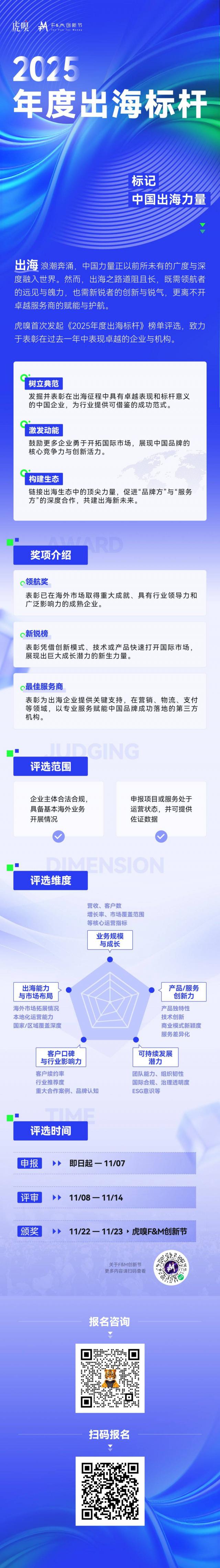虎嗅出海即将推出的《2025 出海标杆榜单 --- 最佳服务商子榜》,正是希望通过系统的评估和深度的调研,帮助更多出海企业找到真正优秀的服务商伙伴,选对企业隐形的合伙人。可自荐 / 提名,5 大维度评选,解锁行业交流与荣誉时刻,点击⬇️,立即参与。